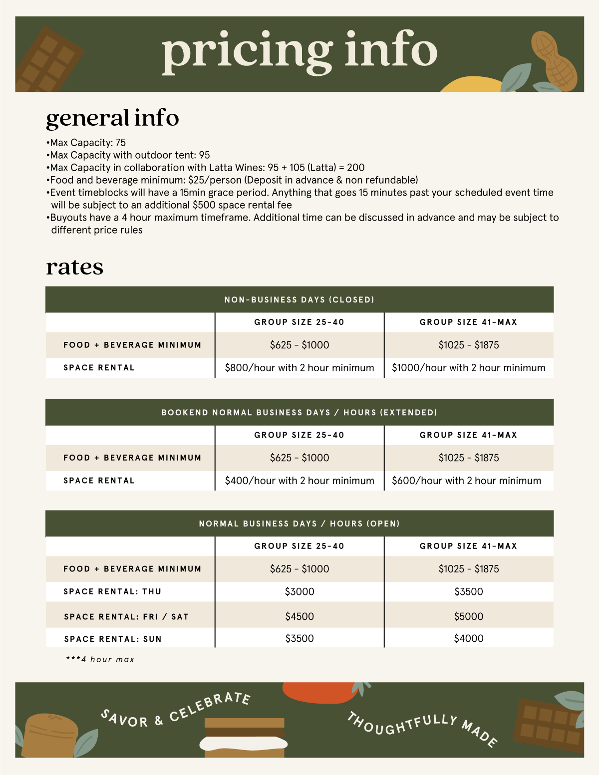 See the neighboring 1 pager for pricing and more. For further questions, please contact us at the email address listed!